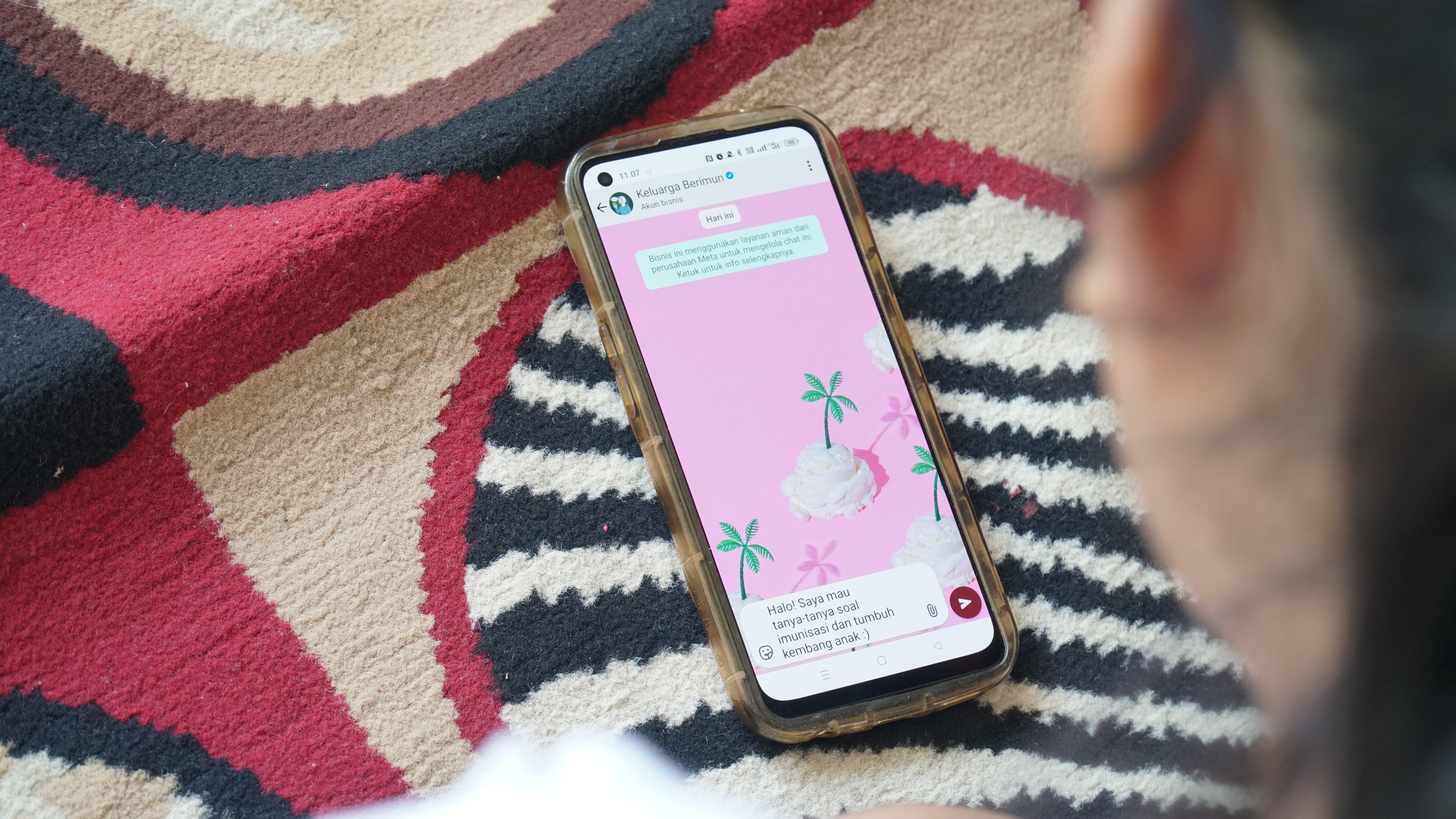 Foto 1: Anggota keluarga sedang mengakses layanan WhatsApp Keluarga Berimun. (Dok: CISDI)